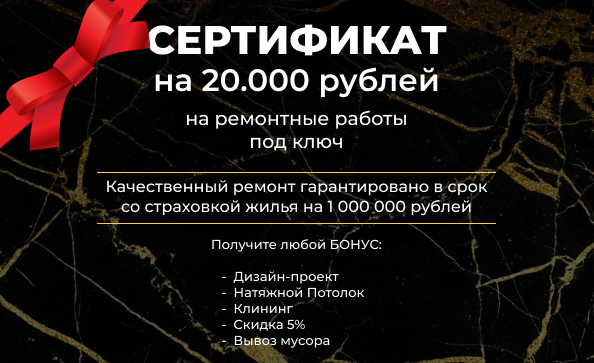 Каждому новому клиенту мы дарим сертификат номиналом 20 000 рублей, который вы можете потратить сами или подарить своим близким